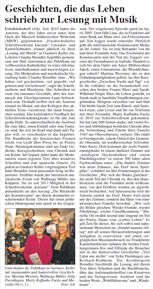 Die Friedrichsdorfer Schreibwerkstatt kurzum präsentiert ihre Arbeiten